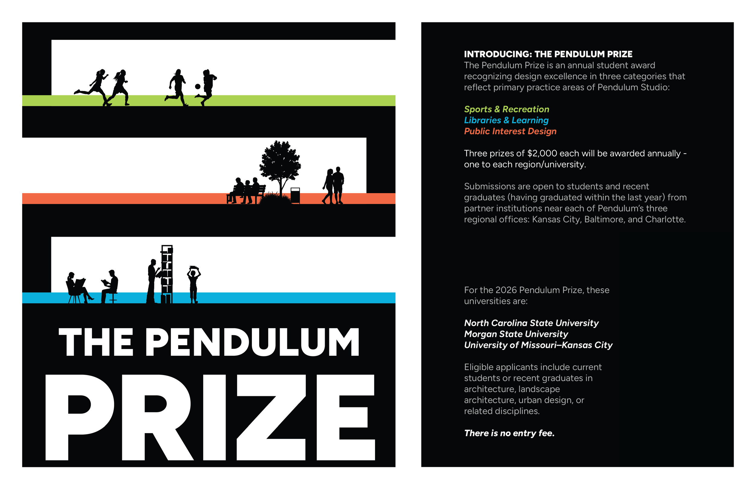 Submissions are open to students and recent graduates from partner institutions near each of Pendulum’s three regional offices: Kansas City, Baltimore, and Charlotte. For the 2026 Pendulum Prize, these universities are: